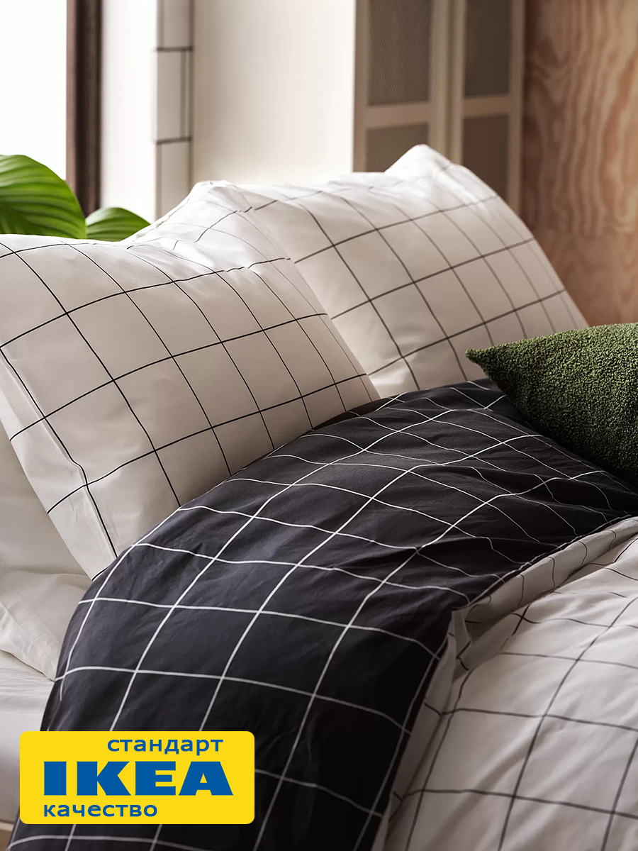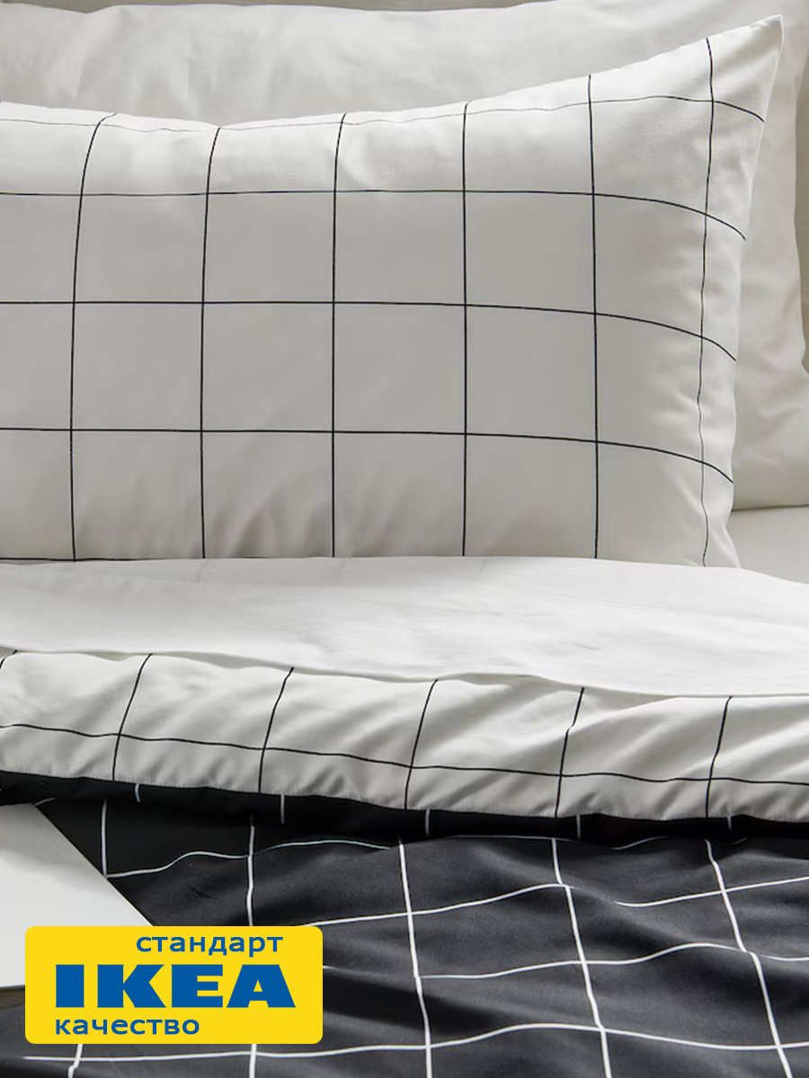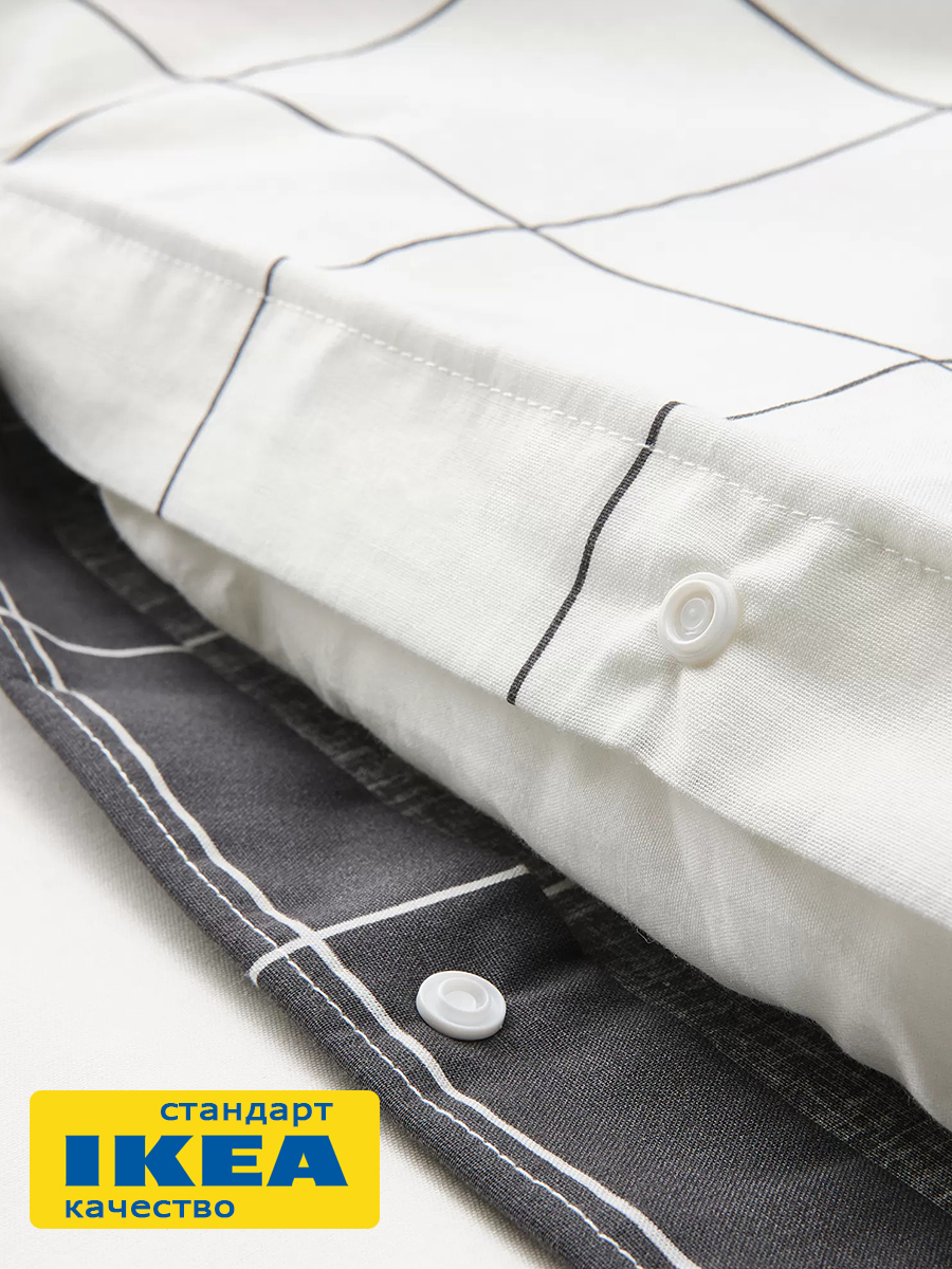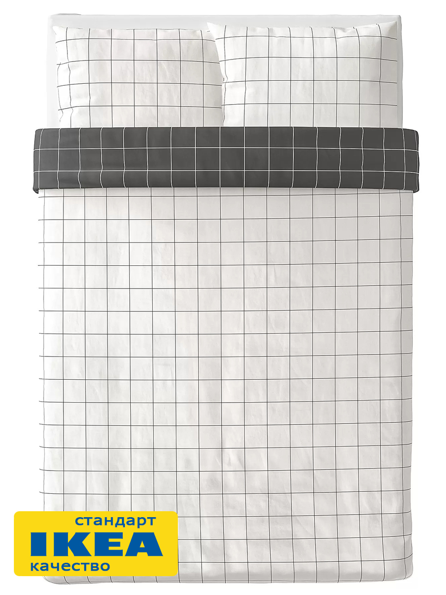 Комплект ВИТКЛЕВЕР с классическим клетчатым узором и двухсторонним пододеяльником (графитовый с одной стороны и белый с другой). Пусть ваше настроение решит, какой стороной вы хотите его положить.