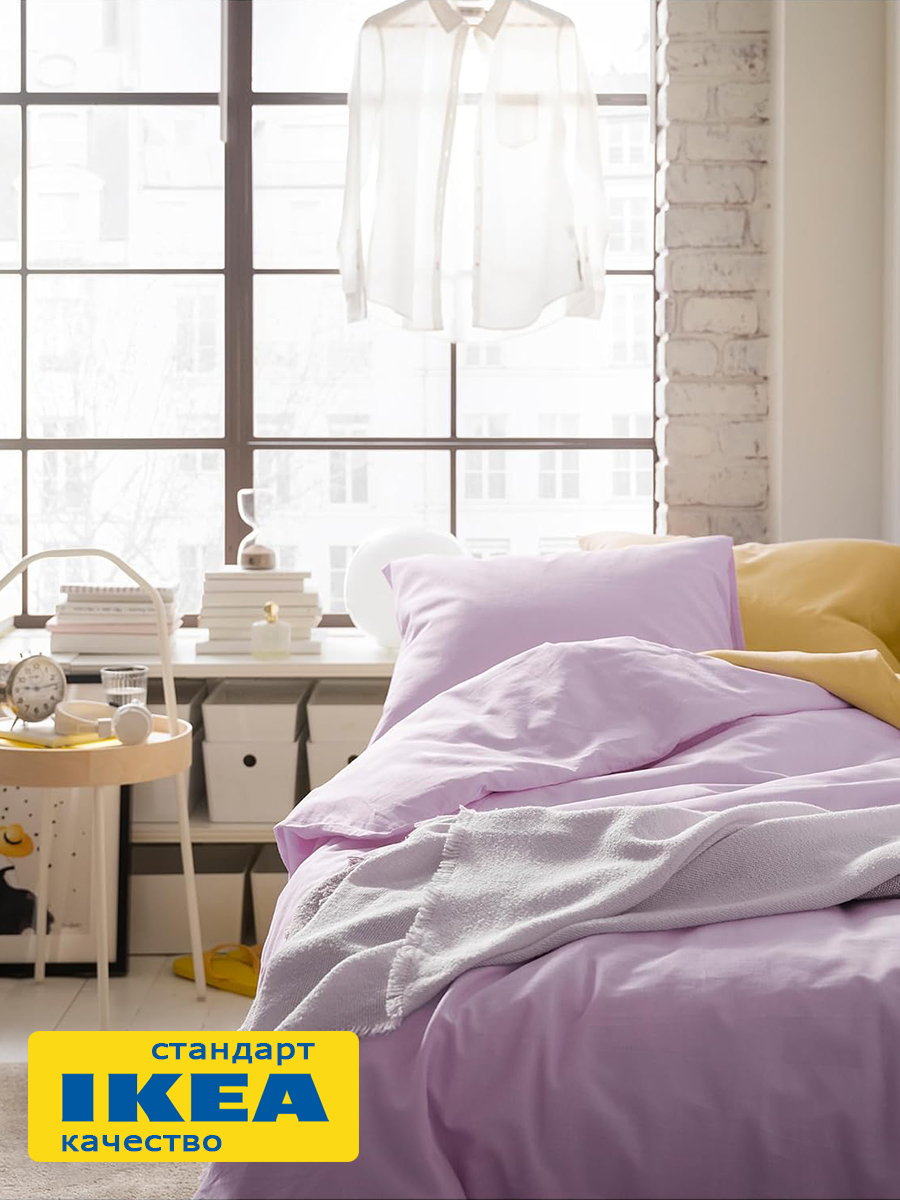 Однотонный комплект НАТЕВИЯ сиреневого цвета привнесёт радостный вид в вашу спальню и будет легко сочетается с другими цветами.