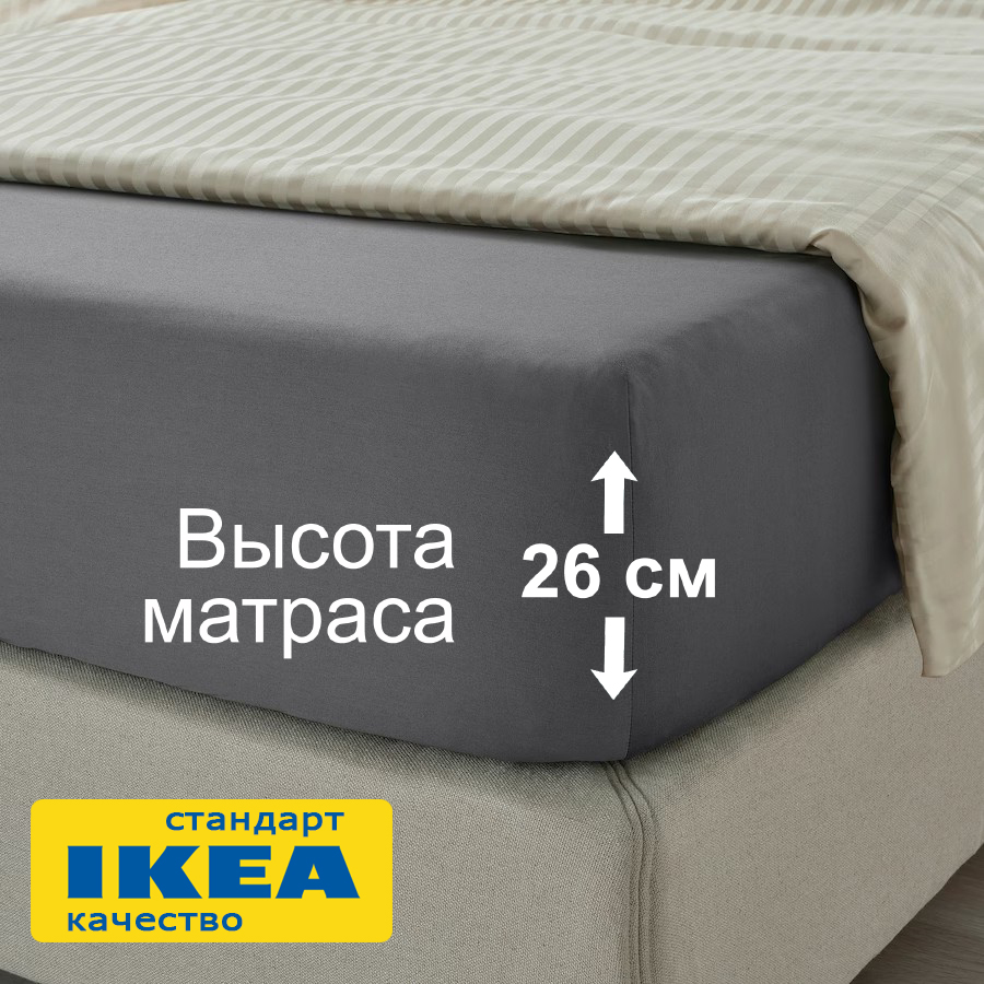 Простыня подходит для матрасов толщиной до 26 см.