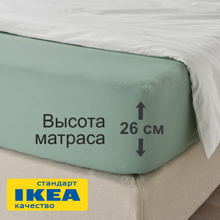 Натяжная простыня на резинке подходит для матрасов толщиной до 26 см.