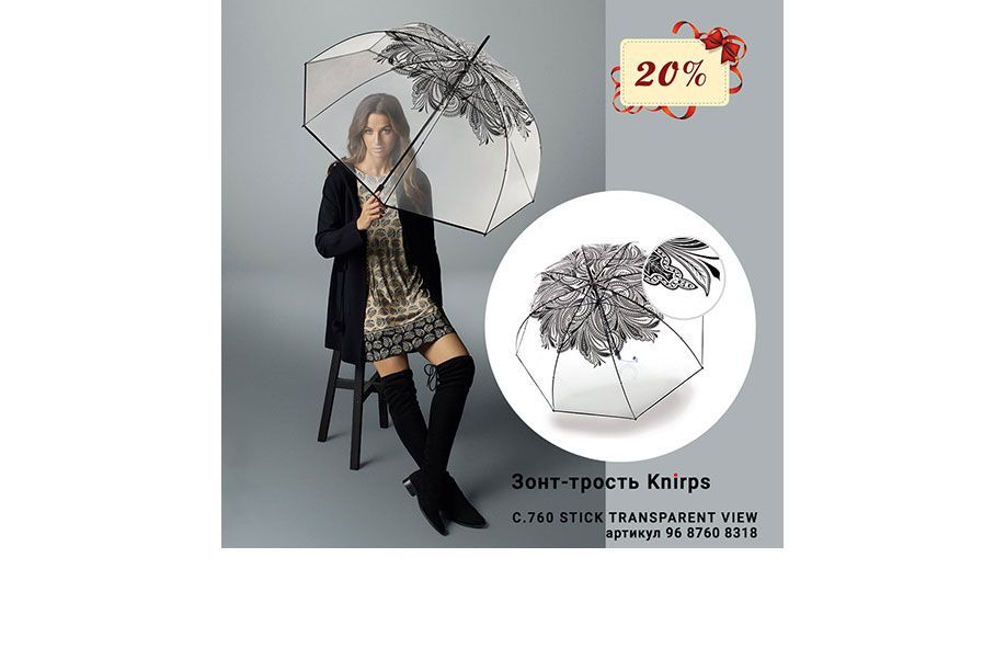 Уже немного времени осталось до Международного женского дня 8 марта. Вы еще не купили подарок своей любимой? Подарите ей красивый, надежный зонт-трость Knirps C.760 STICK TRANSPARENT VIEW 9687608318 и ее восторг будет неописуем. А чтобы было легче сделать такой превосходный подарок мы сделали скидку 20% на этот зонт! Спешите подарить радость!